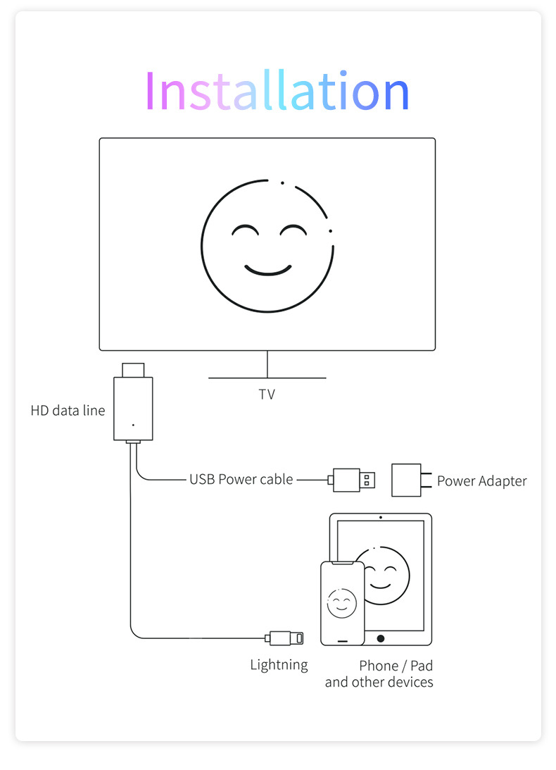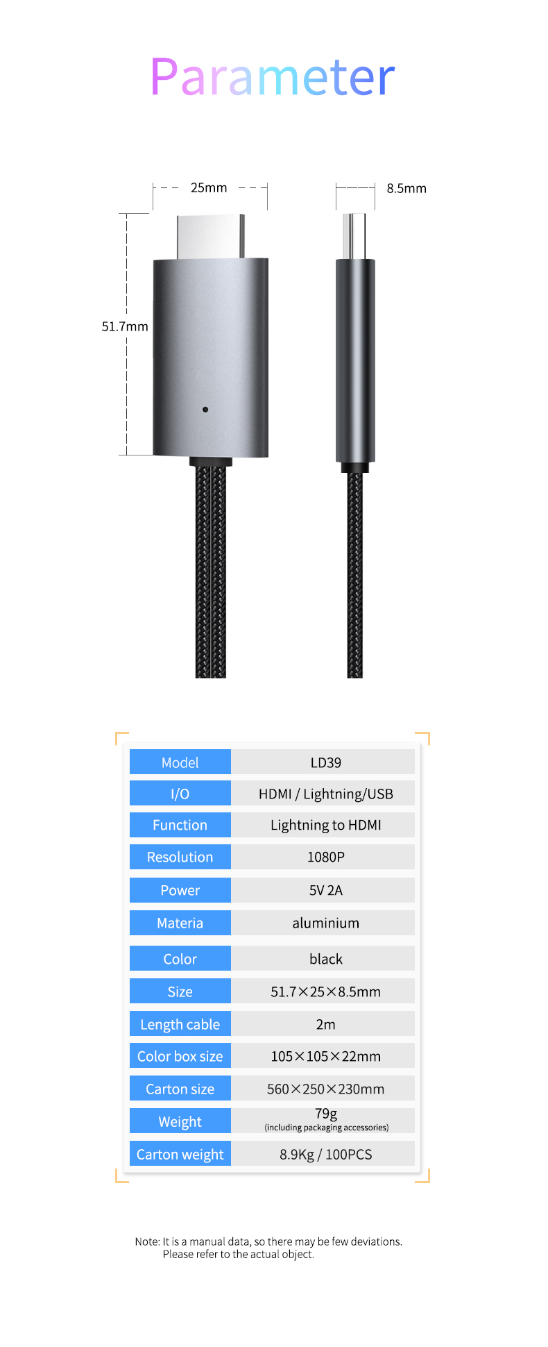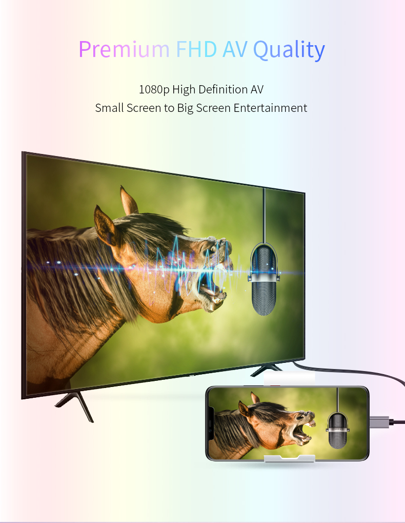 Apple's exclusive lightning interface supports iPad / iPhone Video Converter, 1080 HD projection, simultaneous playback of audio and video, and immersion in large screen view.