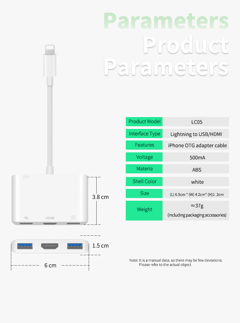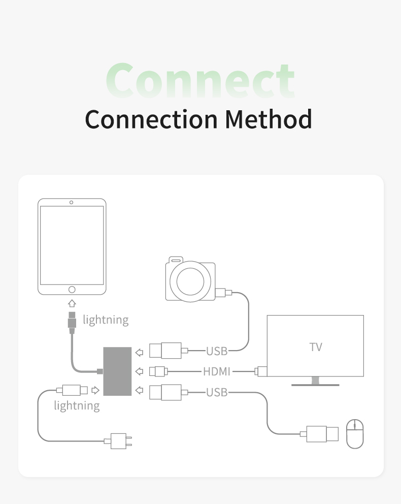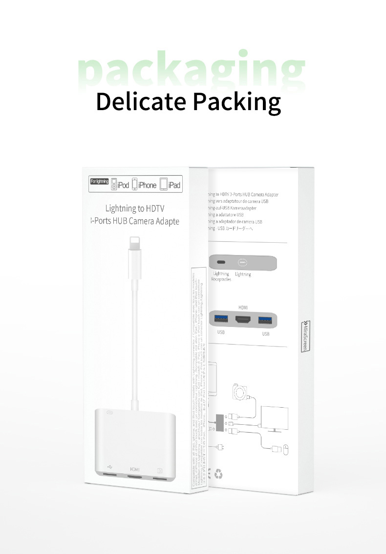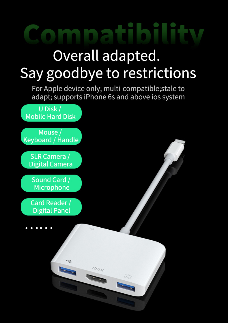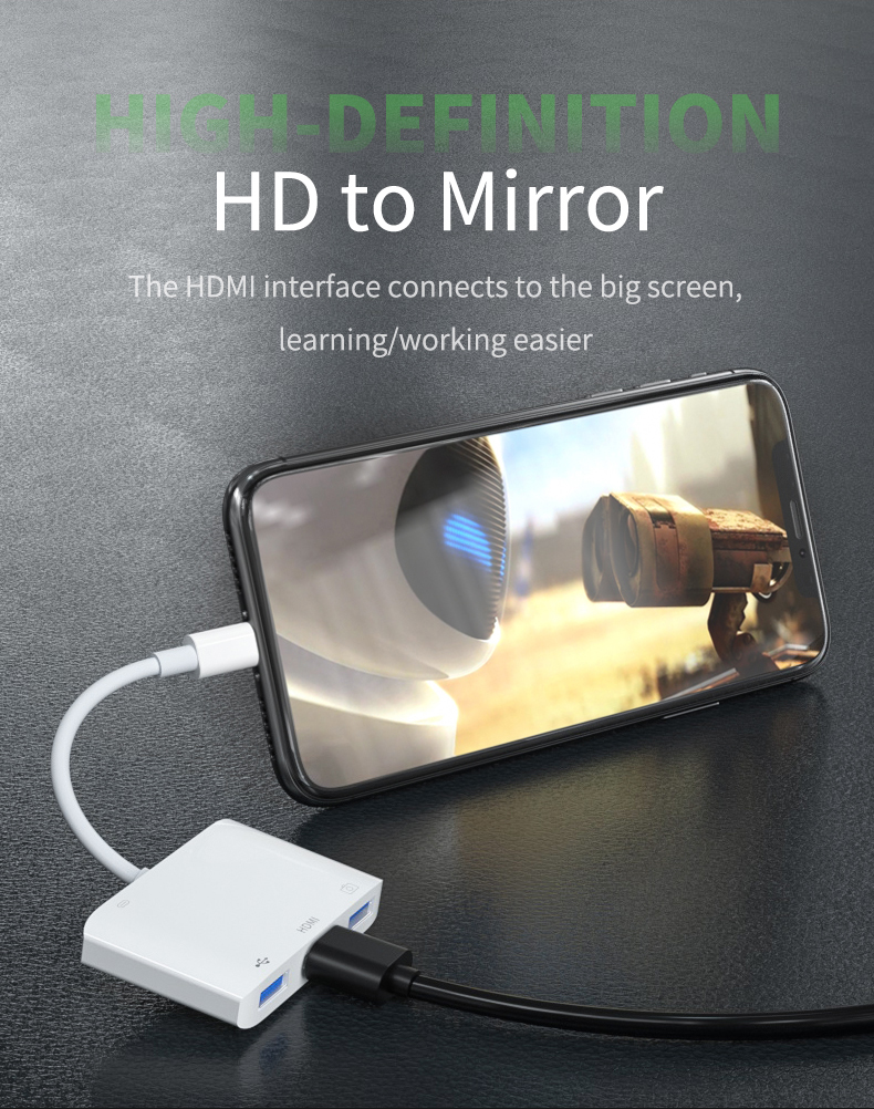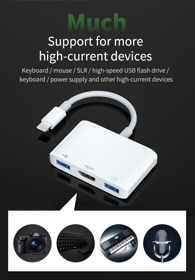 Apple's exclusive multi-function converter rechargeable connected to mouse buttons USB flash disk etc. HDMI can be directly connected to the large screen put mobile phone / tablet content into the large screen and have an excellent office / game / movie viewing experience