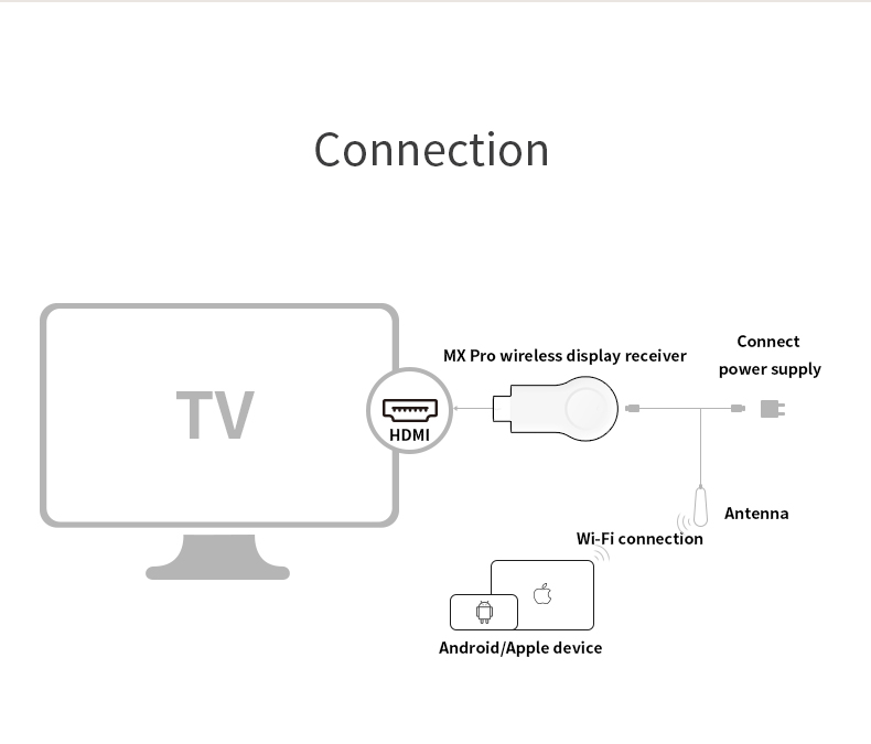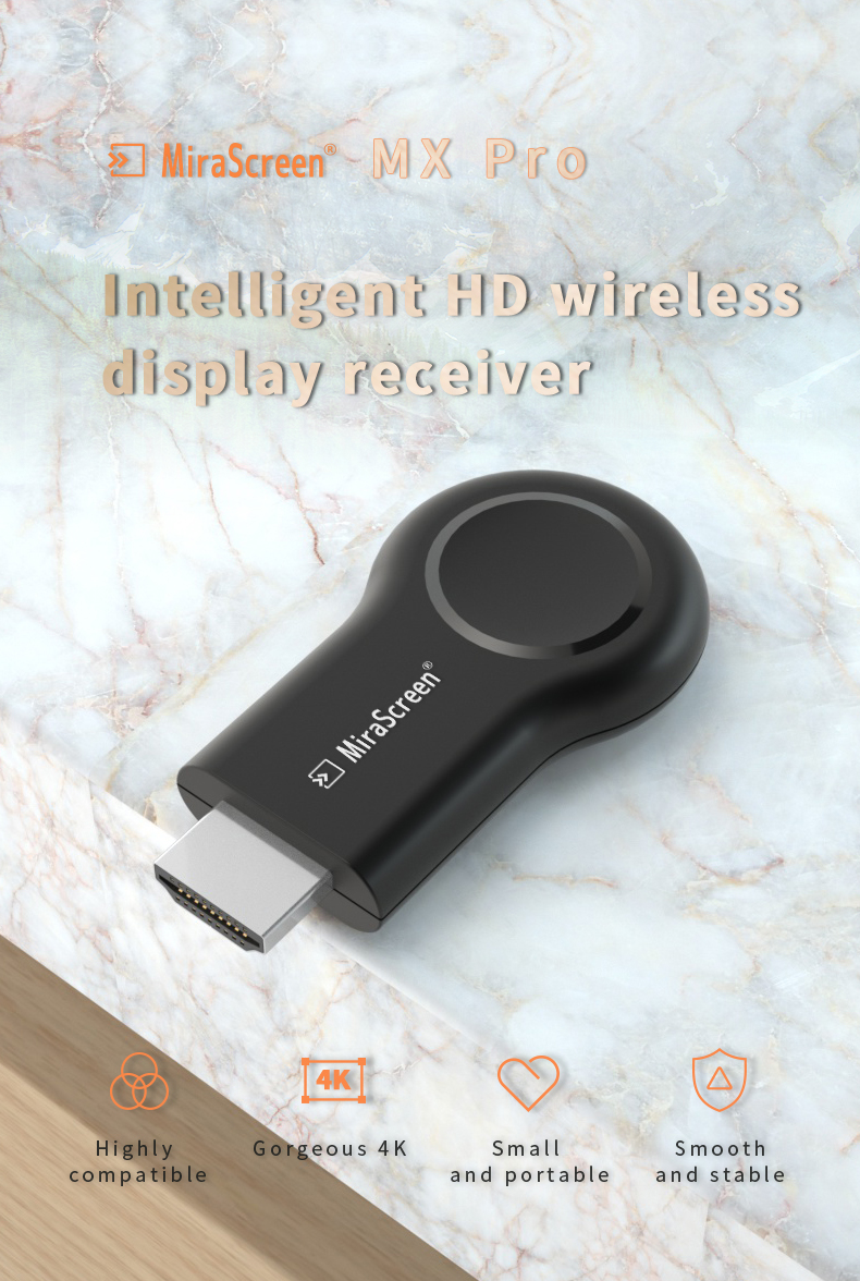 Mirascreen MX Pro is a wireless co screen device. The design is light, round, light and portable, allowing you to easily project the pictures of mobile phones, tablets and notebook computers onto televisions or projectors, which is simple, stable, multi-purpose and can handle all devices! Provide you with excellent viewing experience!