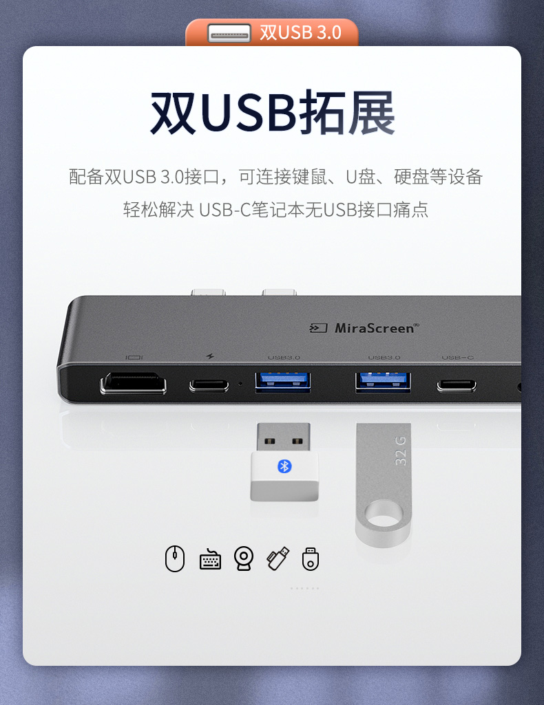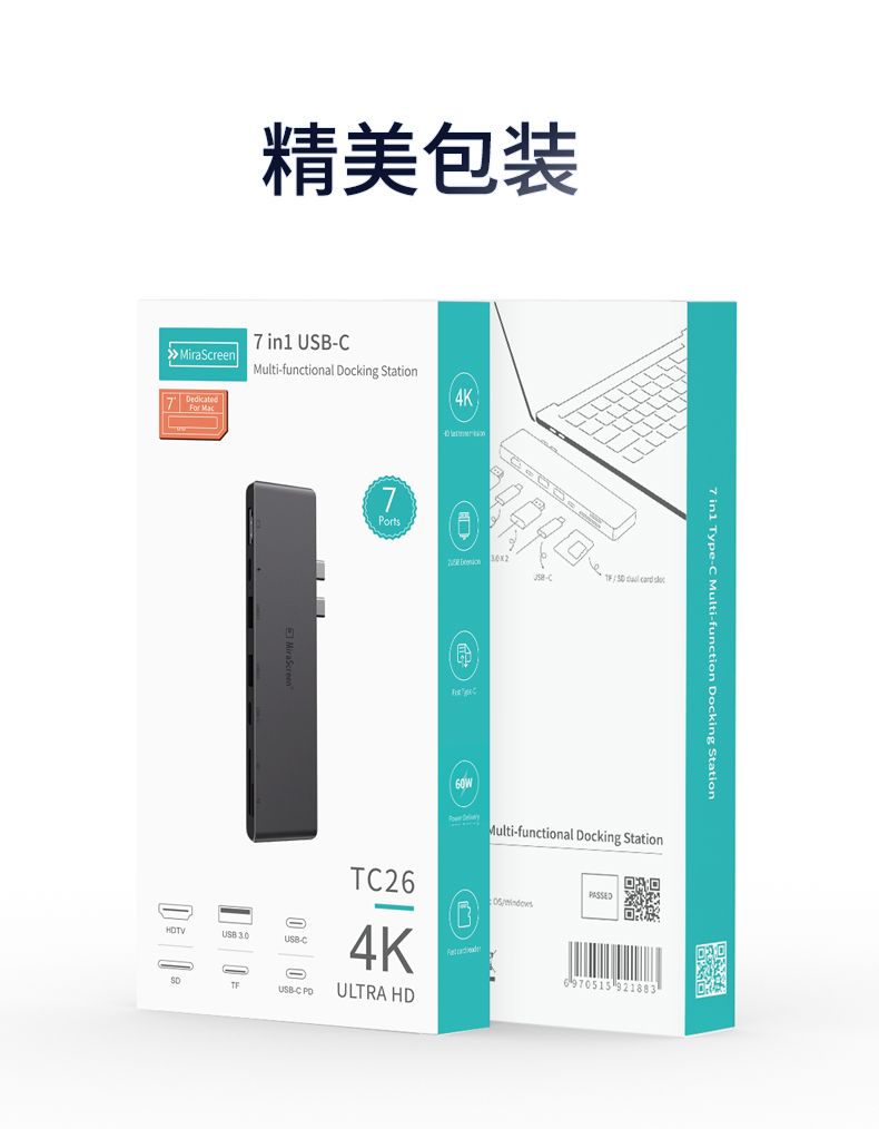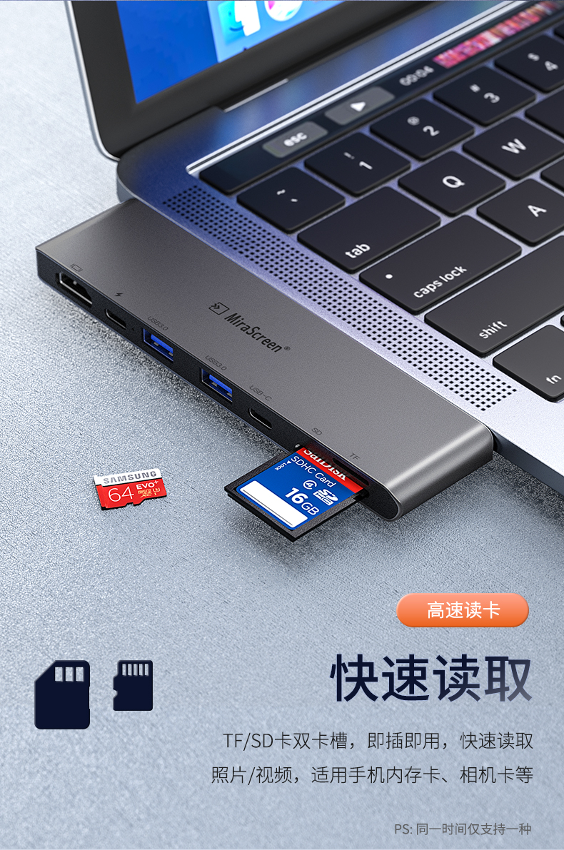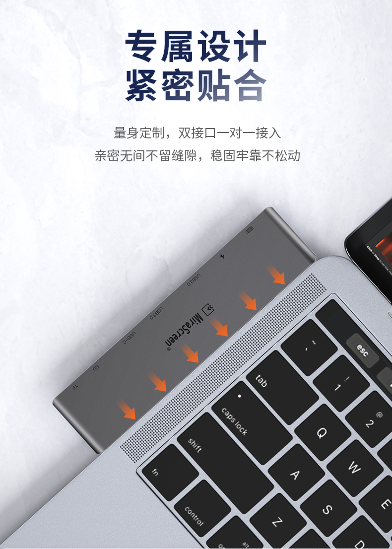 Mac/Air專(zhuān)屬多功能智能擴(kuò),量身定制,接口7口合1,雙接口一對(duì)一接入,親密無(wú)間不留縫隙,穩(wěn)固牢靠不松動(dòng),投屏、擴(kuò)展皆適宜,給你想要的方便?。。?/p>