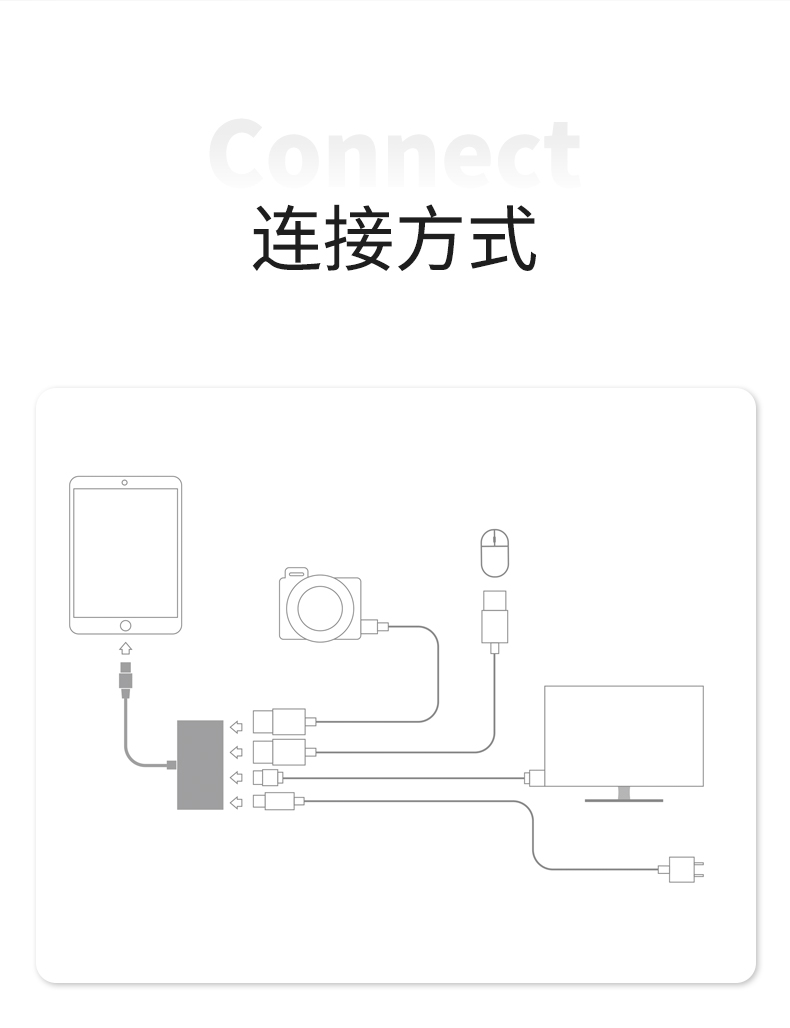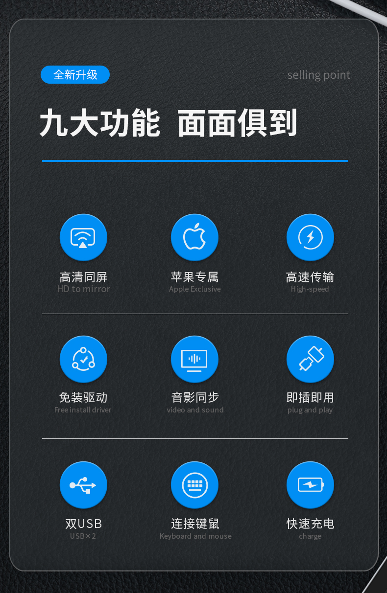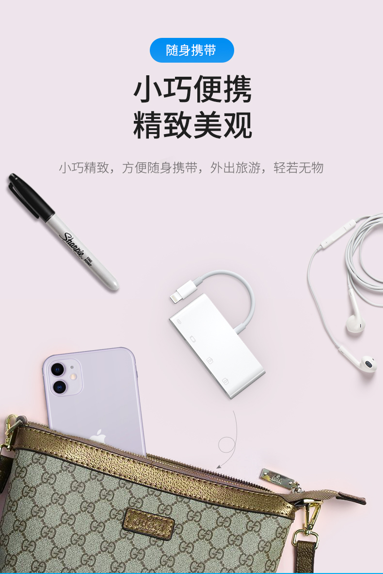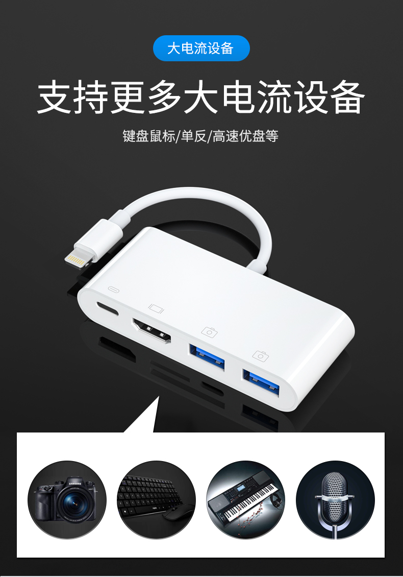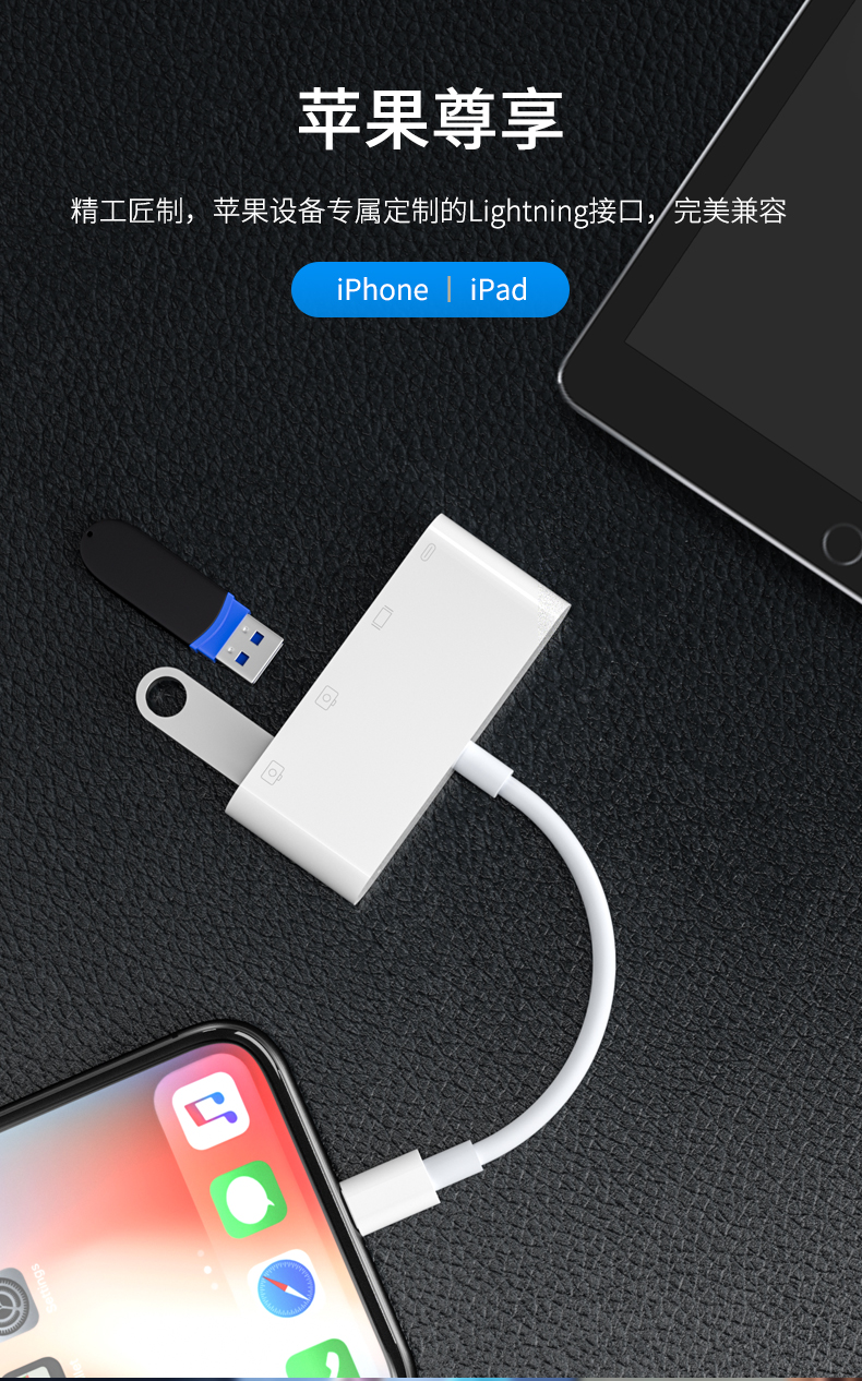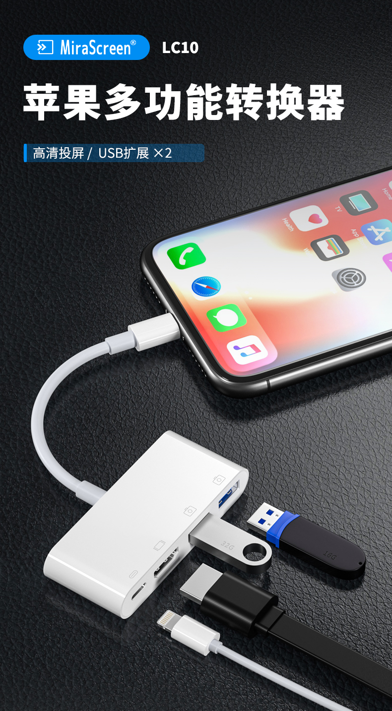 LC10蘋(píng)果多功能轉(zhuǎn)換器,蘋(píng)果專(zhuān)屬Lightning接口,完美兼容iPhone/iPad,即插即用,且擁有九大功能,面面俱到。